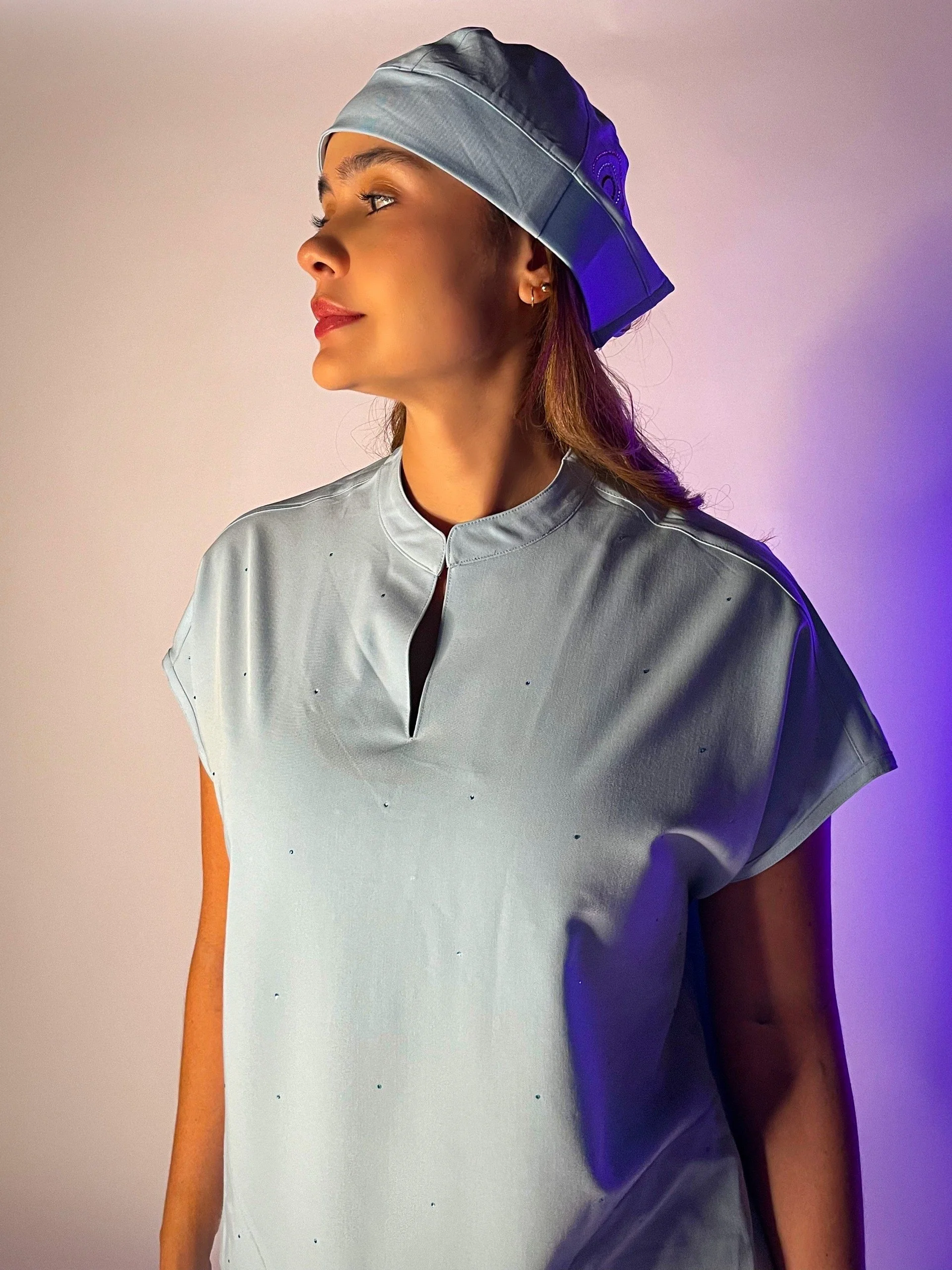 Our crystals have been carefully tested to stay secure through both washer and dryer cycles. While our uniforms are safe for everyday clinical use, it is essential that all healthcare professionals wear the proper surgical covers during any procedure to protect patients and maintain safety standards. Dr. Who Scrubs is not responsible for any issues that result from using our scrubs incorrectly or in surgical environments without the required covers.