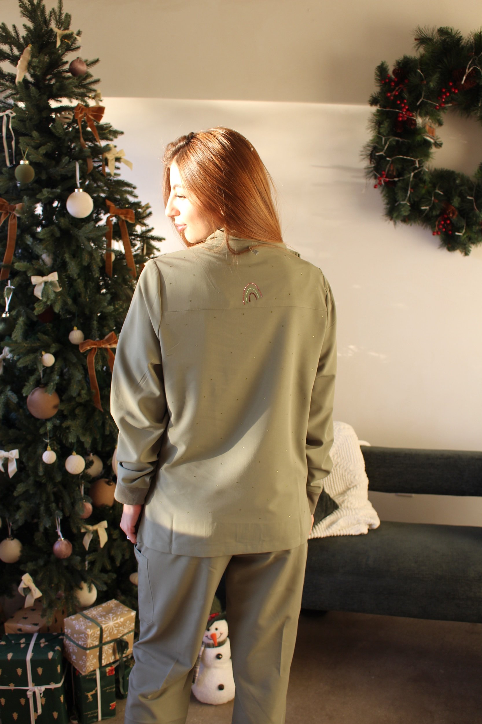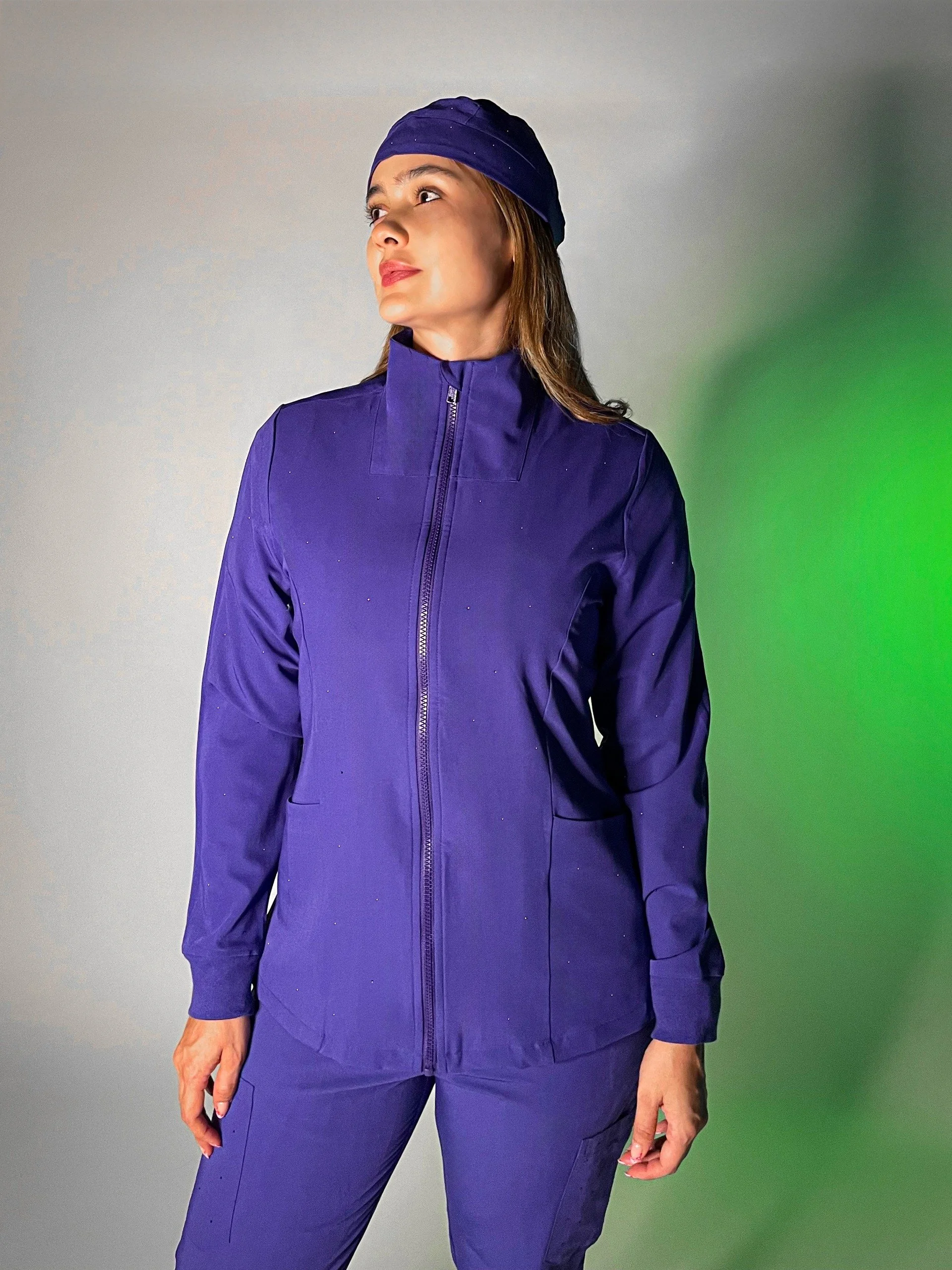 This Jacket is crafted with hand-placed Australian crystals, adding a touch of brilliance to every shift.Cut from spill resistant, four way stretch, breathable fabric. The fabric is spill proof, anti microbial, woven into fibers of the fabric thus maintaining the natural feel for lasting comfort, protects you against whatever life or your patient throws at you.